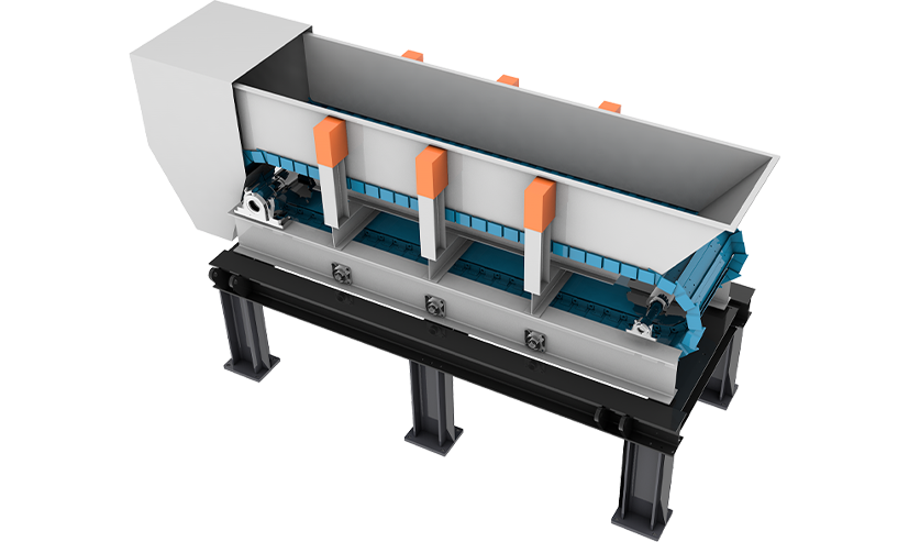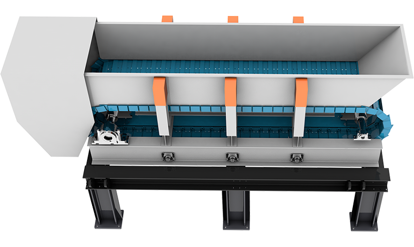 • Пластинчатый питатель DMBL1238: загрузочный бункер установлен в верхней части, а разгрузочный бункер — в передней части; рама должна иметь хорошую жесткость и несущую способность, а также обладать отличной стойкостью к мгновенному удару материала.